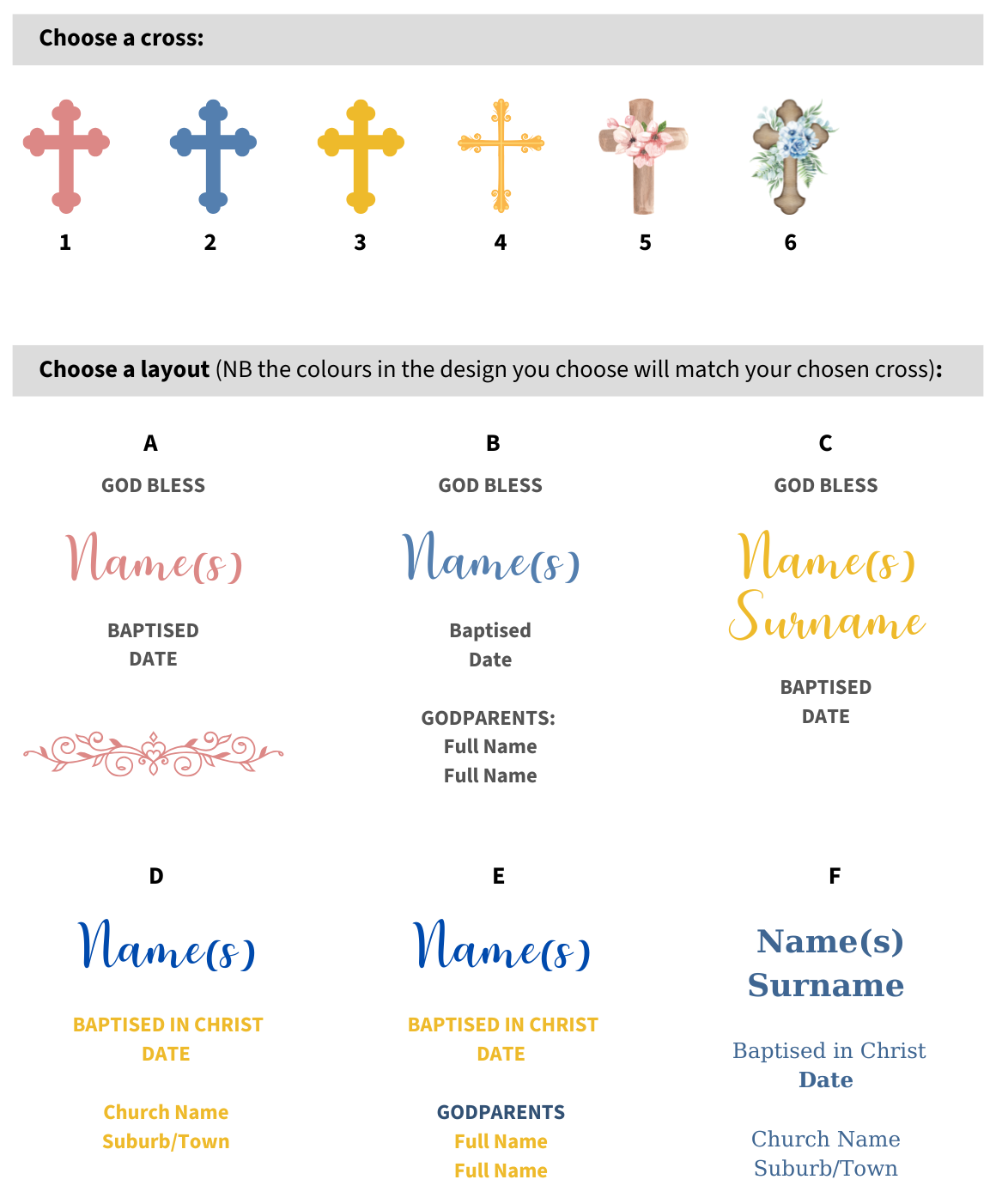 ORDER FORM FOR CUSTOMISED BAPTISM CANDLES